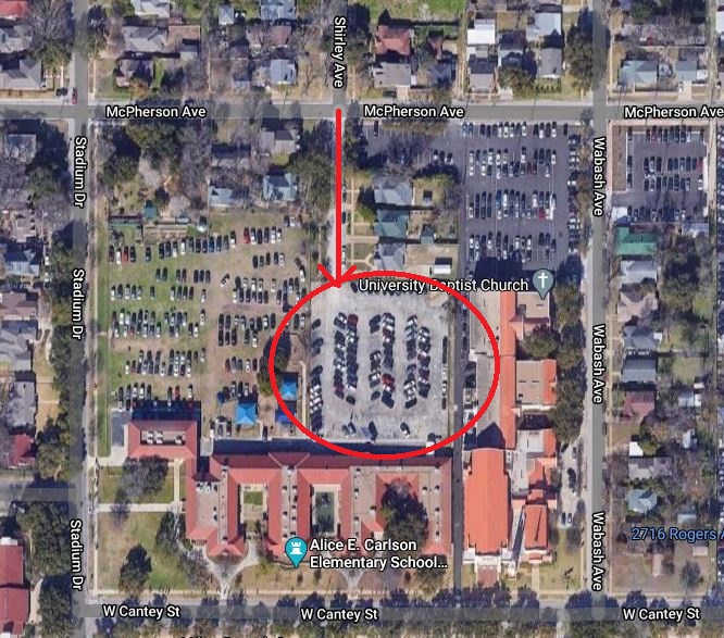 Enter from Shirley Avenue Behind the Elementary School. This is the only access into the Lots for Parking.